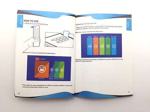 Комплектація товару досить проста. Так, в коробці Ви знайдете безпосередньо проектор, кабель живлення, перехідник RCA-miniJack, пульт ДУ, інструкцію. В інструкції докладно описано, як підключати і управляти проектором, є картинки. Всі опис просте англійською мовою.