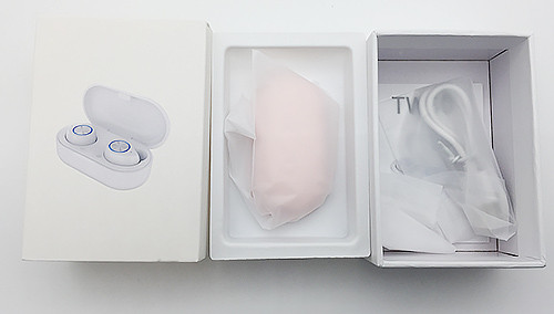 Повна комплектація товару проста і лаконічна. Так, всередині коробки знаходяться зарядний кейс з бездротовими навушниками, інструкція англійською мовою, USB шнур для зарядки кейса і дві пари змінних силіконових насадок. Насадки різного розміру, тому Ви без праці підберете оптимальний для себе варіант.